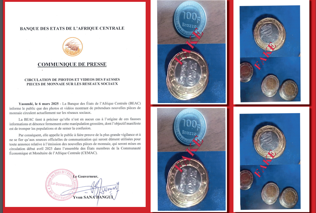 Cependant, cette annonce s’accompagne de la diffusion d’une fausse nouvelle sur les réseaux sociaux. Depuis quelques semaines, des images circulent, prétendant montrer de nouvelles pièces de 150 Fcfa et de 350 Fcfa. Le gouverneur de la Beac a immédiatement réagi, dénonçant fermement ces manipulations destinées à semer la confusion. Il a insisté sur le fait que ces informations sont totalement fausses. La banque centrale relayera toute communication officielle exclusivement par ses canaux institutionnels.