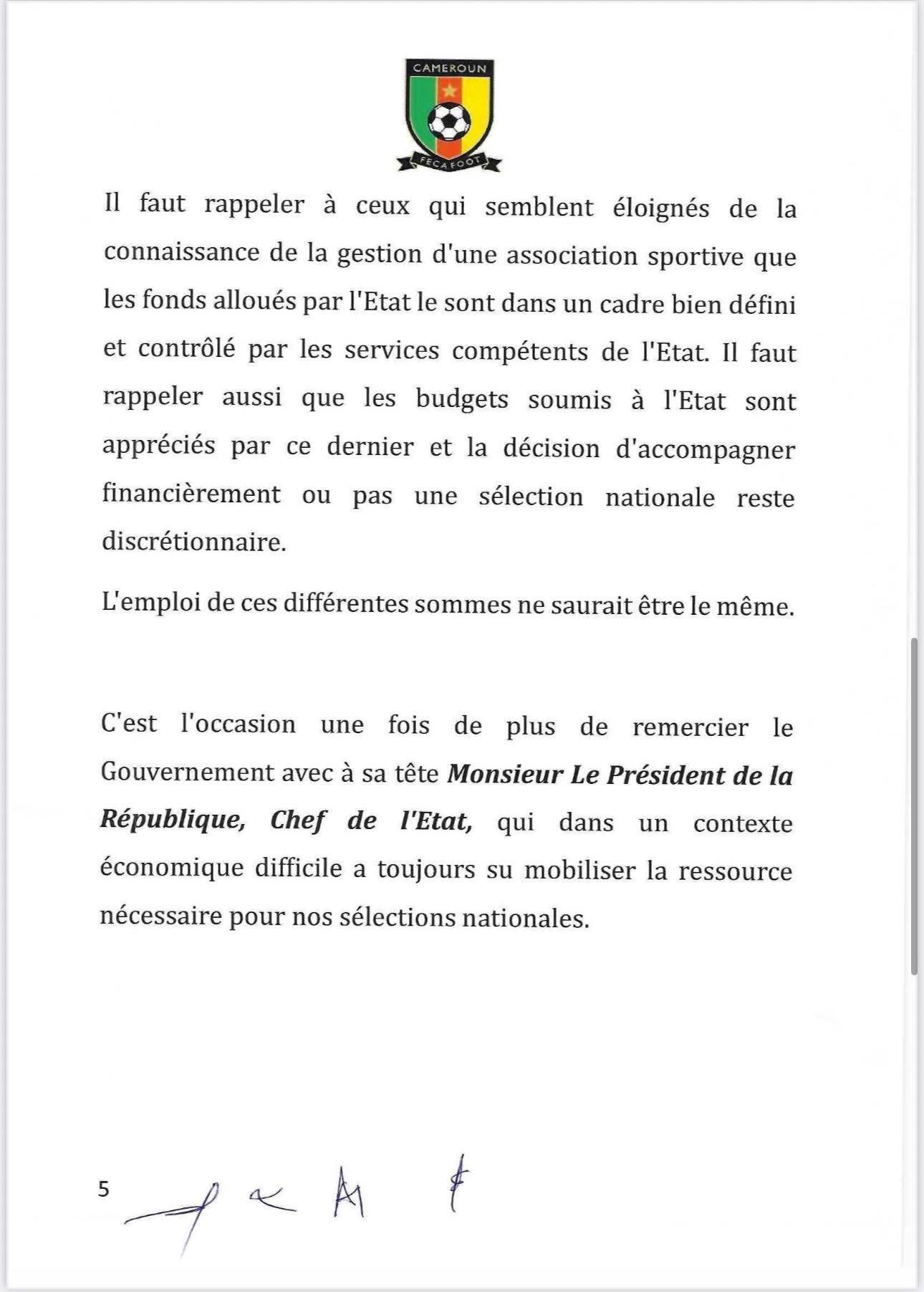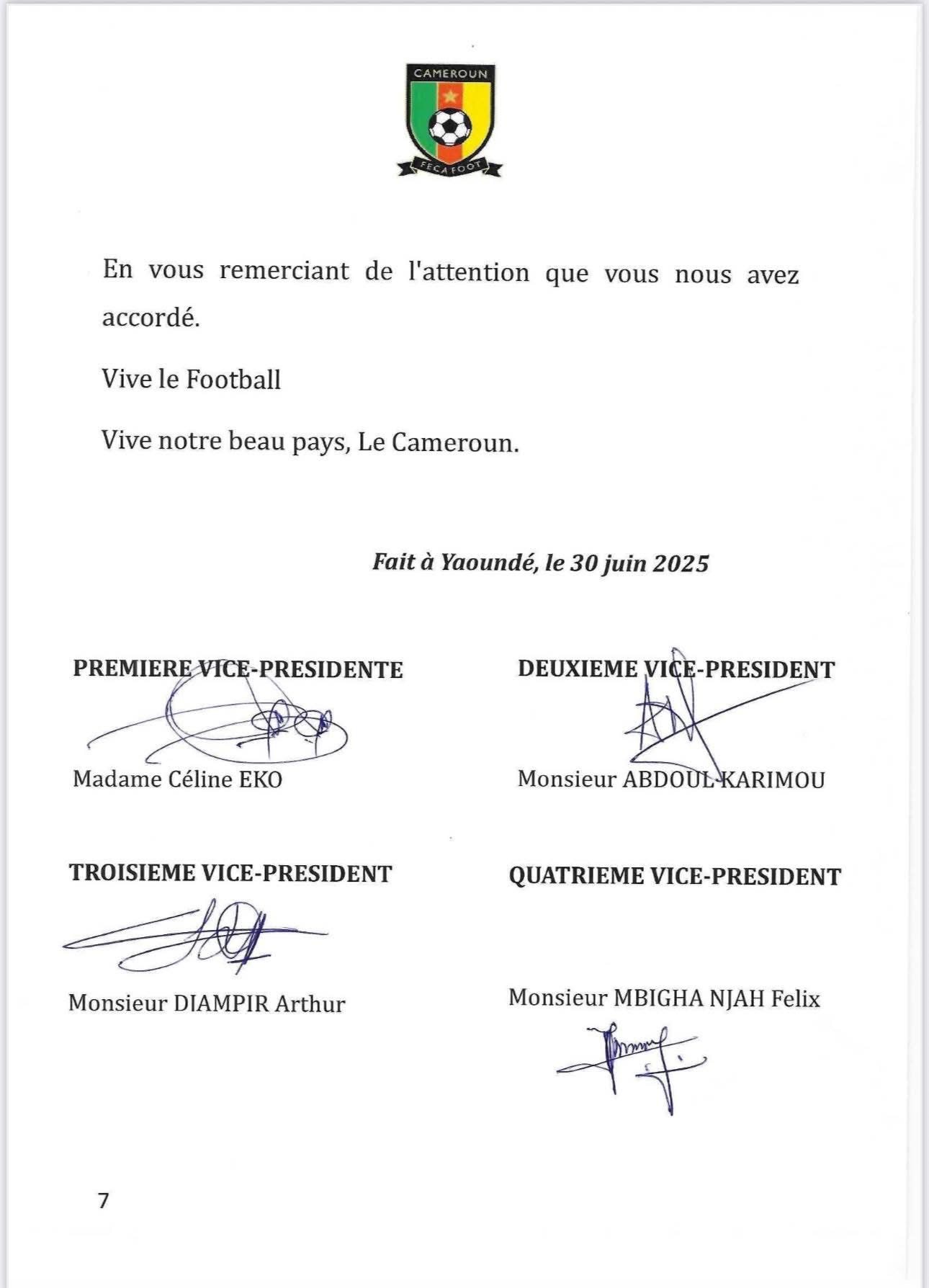 En guise de conclusion, le comité de la Fecafoot exprime sa gratitude envers l’État. Il remercie « le Président de la République » pour son soutien au football national, même dans un contexte économique difficile.