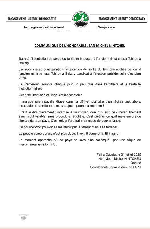 Entre accusations de répression et règlements de comptes politiques, cette interdiction de voyage jette une lumière crue sur les tensions actuelles au Cameroun.