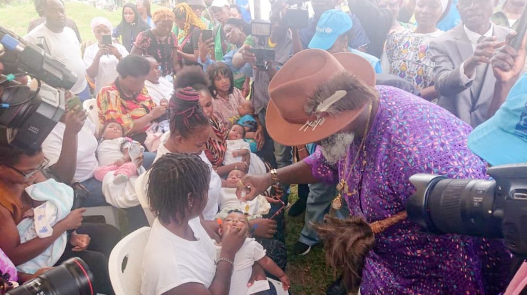 Tout s’est déroulé dans une cour de l’hôpital remplie de monde. L’on a vu Samuel Dieudonné Ivaha Diboua, gouverneur de la région du Littoral. Sa Majesté Érick Jamil Songue Madiba, chef supérieur du canton Bakoko du Wouri avec ses notables.