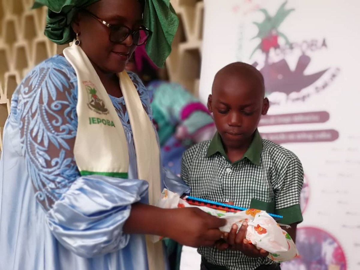 La caravane Jepoba a d’abord déposé les caisses du matériel didactique à l’Ecole publique de Bomono-ba-Mbenguè. Pour donner cahiers, livres, stylos et autres aux 14 meilleurs de l’année. Qui ont surtout eu à partir de 14/20 de moyenne pour le passage en classe supérieure.